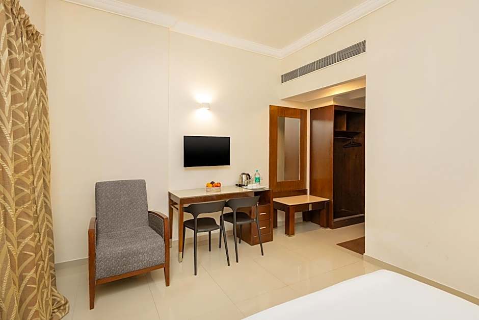 This family room's special feature is the fireplace. The spacious family room provides air conditioning, a private entrance, a terrace with garden views as well as a private bathroom featuring a bath. The unit offers 1 bed.